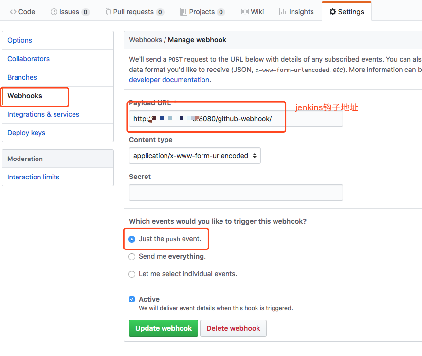 这里就是完成了jenkins的配置,接下来在github中配置钩子,当项目发生变化,就调用钩子,打通jenkins